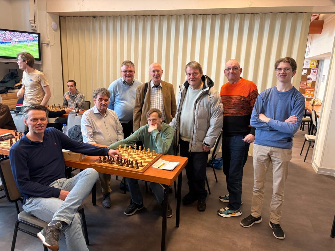 De KNSB-competitie zitten er voor de 3 teams van OZU weer op. En er was genoeg spanning in die rondes. OZU1 kon promoveren, OZU3 degraderen. OZU 2 had zich 3 rondes eerder al veilig gespeeld. OZU 1 Promoveert naar 3de klasse In de laatste ronde was winst voldoende, bij 4-4 moest medekandidaat niet verder komen dan 5,5-2,5 winst. De laatste ronde in afgelopen seizoen (2425) was dramatisch. Degradatie op een half bordpunt. De laatste ronde was Wageningen 2 op bezoek. Het werd een geflatteerde 6-2 overwinning met te veel cadeautjes en een belangrijke en goede overwinning van Leon Elferink (zie hieronder). Op de kampioensfoto ontbreken de vaste spelers Daniel Kuiper…