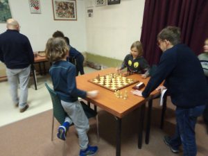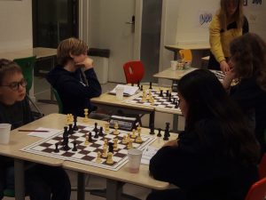 Haar broer Marnik streed op bord 1 tegen Isafara. Dat werd een spannende en zware partij. Isafara nam ruim haar tijd, waardoor ook Marnik dit deed. De partij werd er interessanter door. Het begon niet zo fijn voor Marnik, Isafara had vroeg in de partij met de dame op b3 een mooie aanval. Maar helaas werd veel dat Isafara probeerde door Marnik gezien. En Marnik revancheerde. Verderop in de partij dreigden twee stukken van Isafara bijna ingesloten te raken en later volgde nog een vork. Isafara moest hard werken om de partij te keren in haar voordeel. Dit lukte uiteindelijk niet. Al met al was het een goede voorbereiding voor wat Isafara te wachten stond in het weekende bij de landelijke kwalificaties voor de B meisjes. Zij werd daar eerste!
